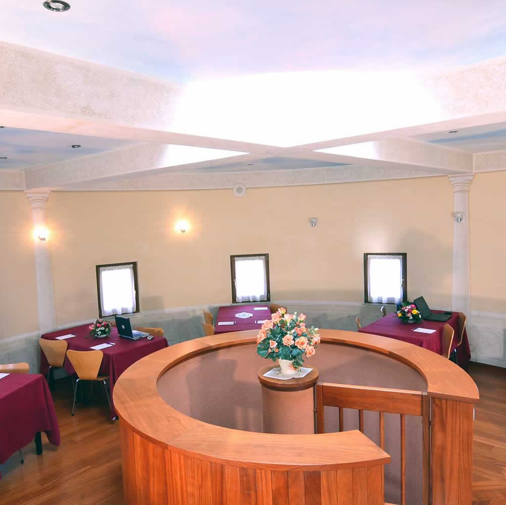 Our large congress room (max 160 seatings), the intermediate one (max 40 seatings), the Round one (max 30 seatings) and the two smaller ones can be set up to your needs for job interviews, in theater style, in horseshoe style, in classroom style, in herringbone style, with central table, with tables arranged for hairdressers courses, with platform for fashion shows, with advertising stands, etc.
